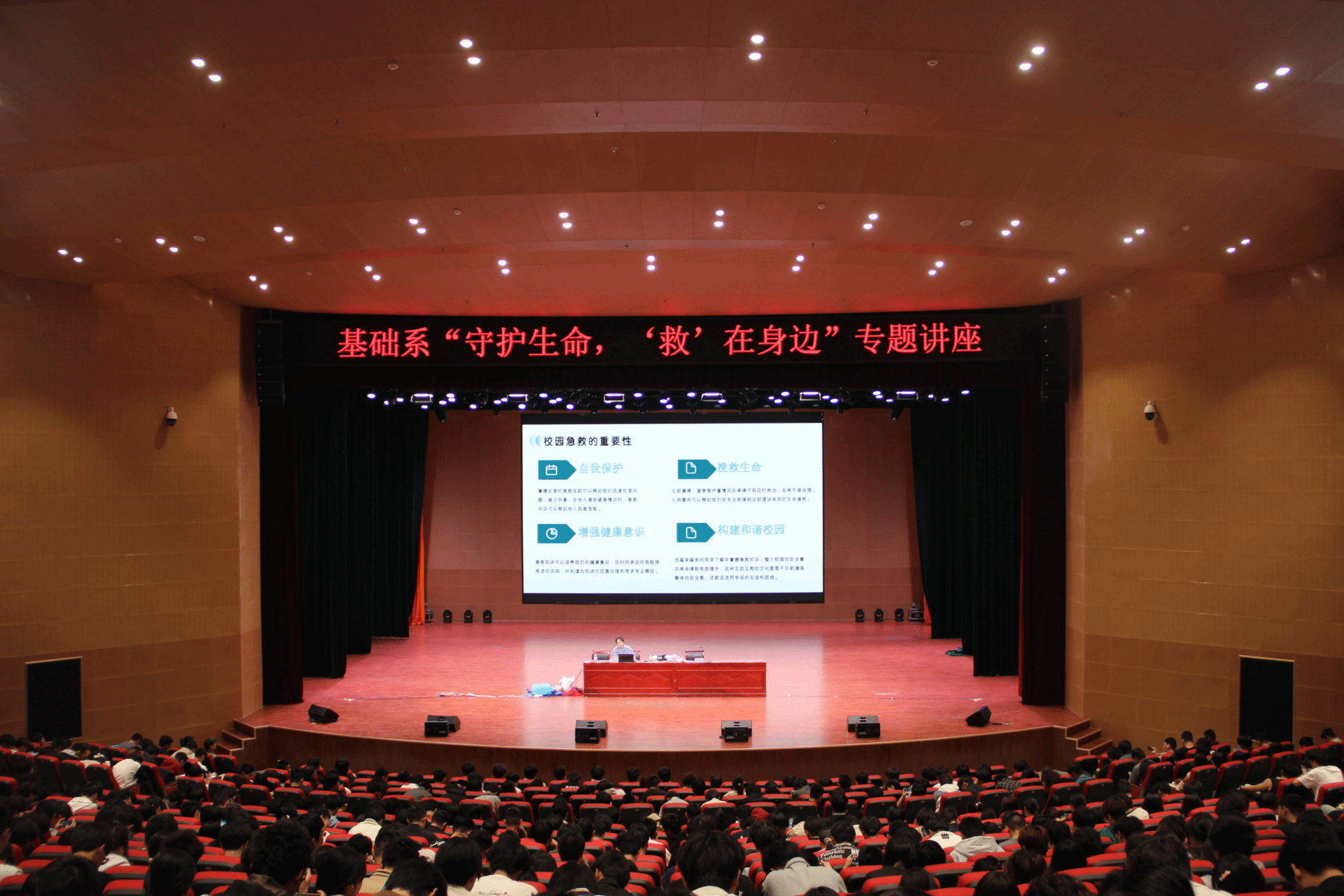 為提升學生安全意識,筑牢校園安全防線,4月15日晚,基礎系在經世大禮堂開展“守護生命,‘救’在身邊”校園安全教育講座,邀請安徽文達信息工程學院范猜猜老師給同學們上了一堂深刻而生動的校園安全教育急救技能課。本次講座由系黨總支副書記孫巍巍老師主持,全系學生參加了講座。