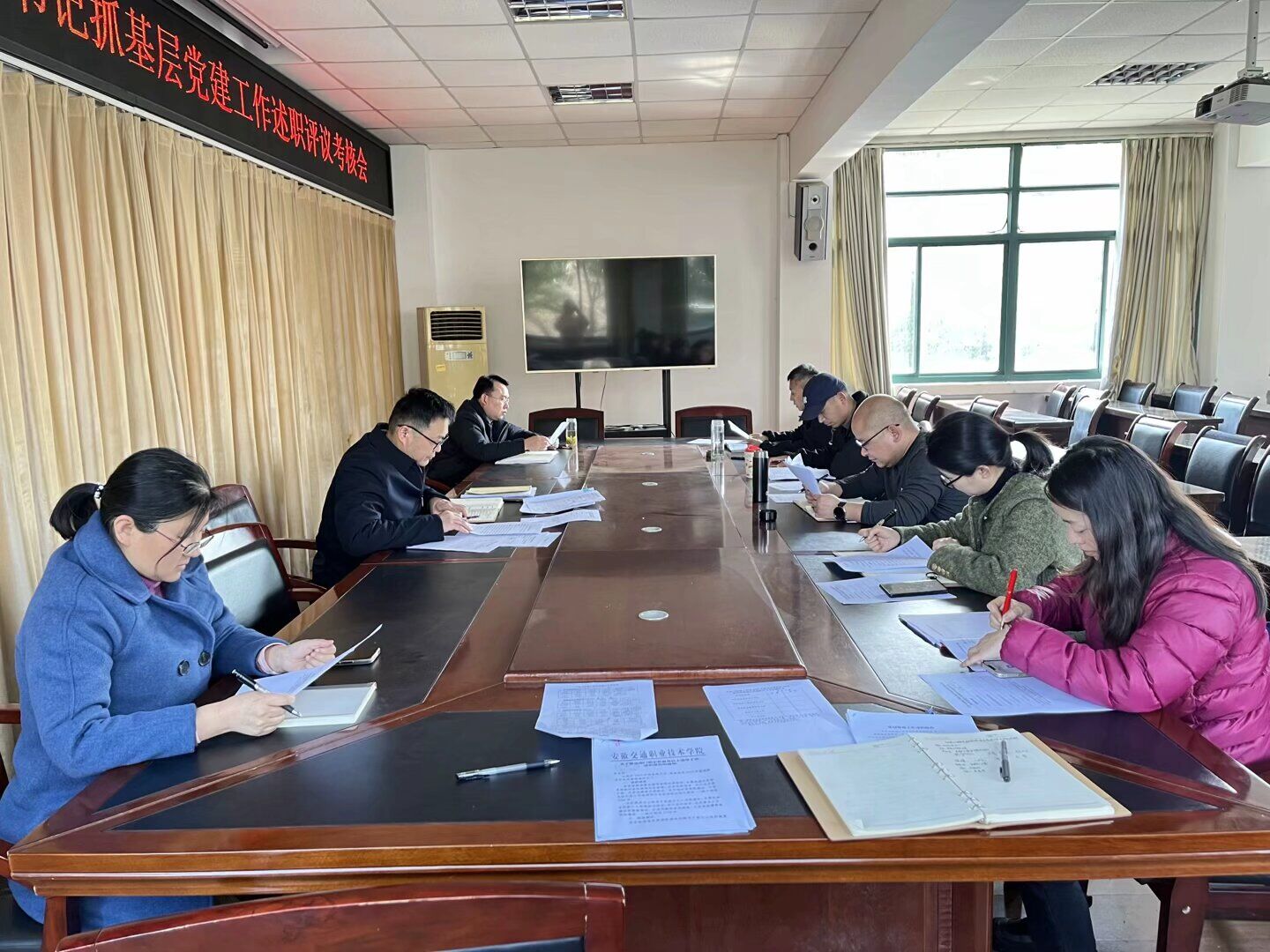 會上,汽車維修教研室黨支部、新能源技術教研室黨支部、智能裝備教研室黨支部、實訓中心黨支部和學生黨支部分別結合各自工作崗位,從主要工作開展情況、存在的問題以及下步打算等方面依次進行現場述職。述職結束后,進行了現場無記名測評打分。