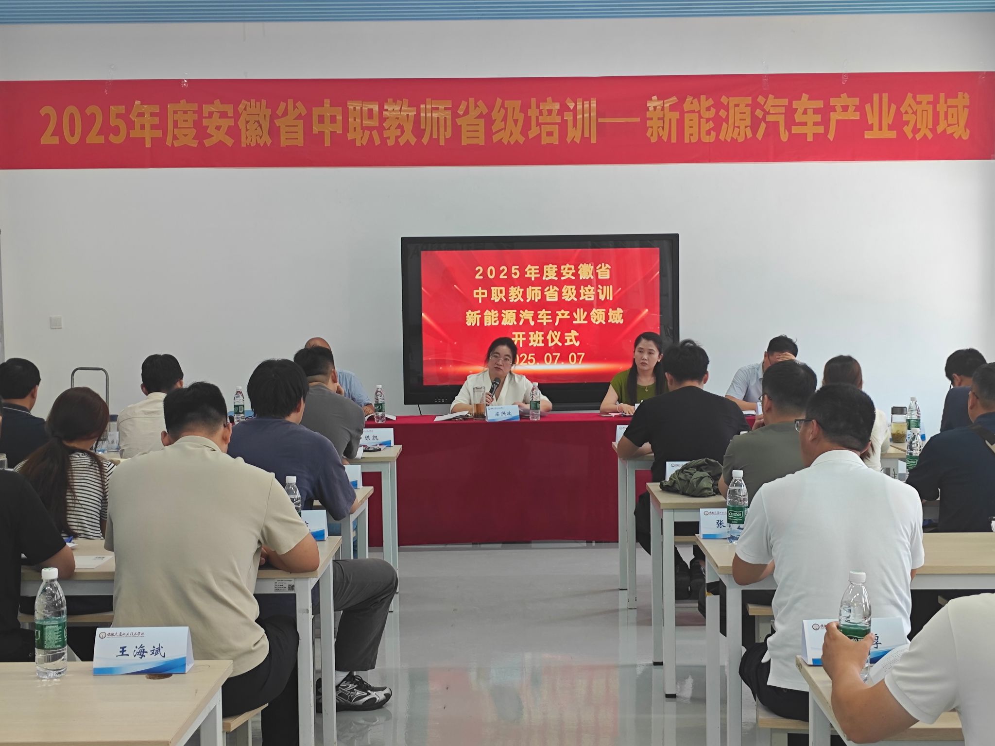 7月7日上午,2025年度安徽省中職教師省級培訓(xùn)《新能源汽車產(chǎn)業(yè)領(lǐng)域》開班儀式在我校舉行。本次培訓(xùn)由省教育廳主辦、學(xué)校承辦,旨在提升中職院校新能源汽車相關(guān)專業(yè)教師的專業(yè)技能與教育教學(xué)能力,為安徽省新能源汽車產(chǎn)業(yè)發(fā)展輸送更多高素質(zhì)技能人才。安徽省中等職業(yè)學(xué)校教師繼續(xù)教育中心主任張嫻,校黨委委員、副校長梁洪波,汽車工程學(xué)院院長湯峰、副院長程章出席開班儀式。儀式由程章主持。