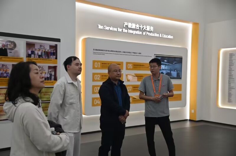 與會期間程章一行3人來到亞龍集團實地走訪調研,并就機電一體化技術專業建設和校企合作等內容進行深入交流。