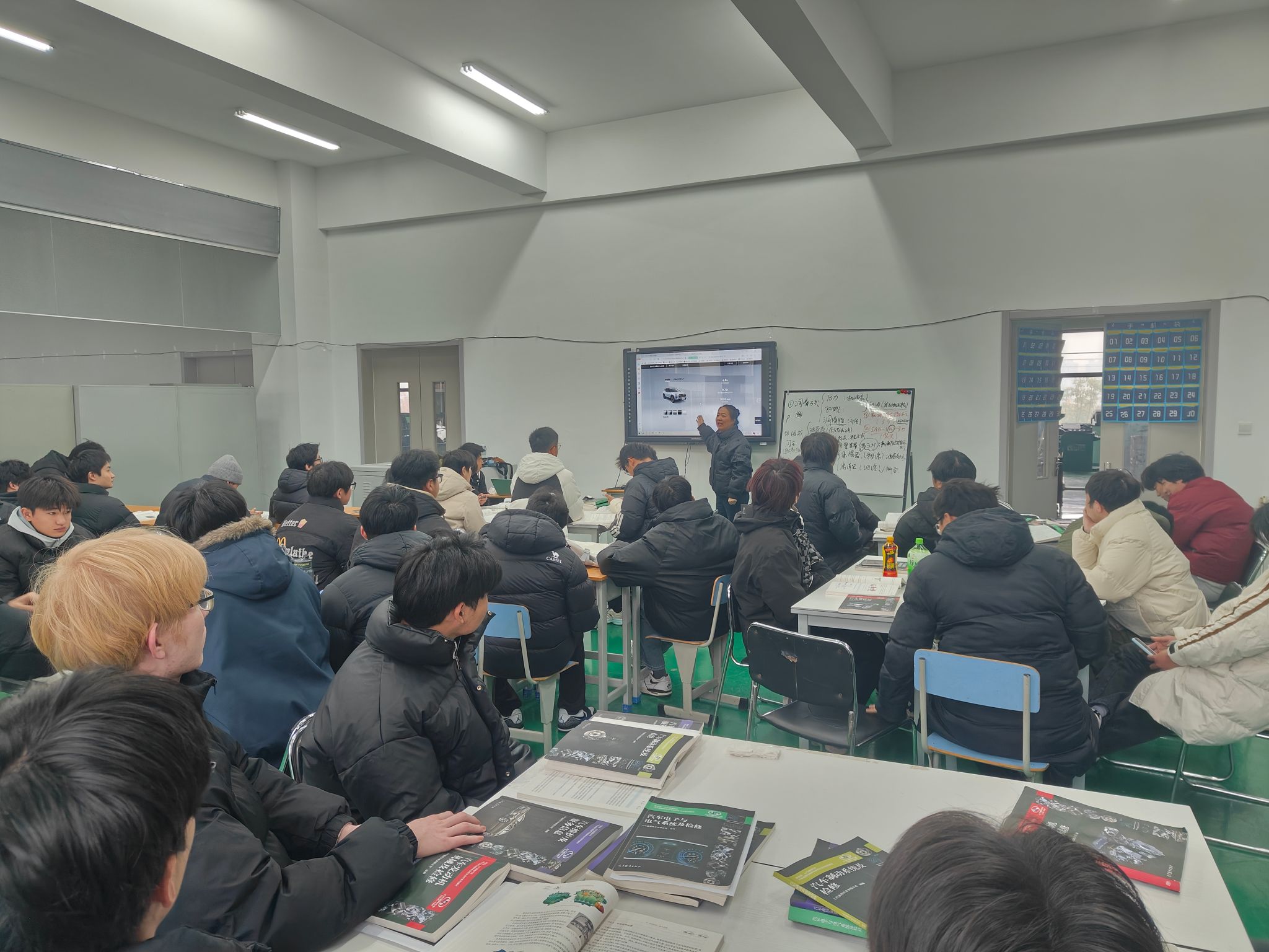 孟老師詳細(xì)介紹了雪佛蘭探界者Plus插混車(chē)型,TAHOE太浩2.7T全尺寸SUV,其從“硬派美學(xué)與家庭關(guān)懷融合”的設(shè)計(jì)理念切入,超越同級(jí)的5382x2058x1940mm車(chē)身尺寸帶來(lái)了空間優(yōu)勢(shì)。結(jié)合實(shí)物,孟老師向同學(xué)們展示了雙層熏黑格柵、電動(dòng)開(kāi)啟尾窗等細(xì)節(jié)設(shè)計(jì);同時(shí)解析了2.7T可調(diào)缸發(fā)動(dòng)機(jī)與10AT變速器的動(dòng)力組合,通過(guò)動(dòng)力參數(shù)對(duì)比與路況模擬視頻,展示了此車(chē)型在城市通勤與長(zhǎng)途越野中的雙重適配性;通過(guò)演示多屏虛擬座艙與Super Cruise輔助駕駛系統(tǒng)的操作邏輯,讓消費(fèi)者直觀感受智能便捷性。最后,孟老師解讀Silverado EV Trail Boss純電皮卡,圍繞“專(zhuān)業(yè)越野電動(dòng)化”定位,講解2英寸舉升套件、35英寸全地形輪胎等越野裝備的優(yōu)勢(shì),通過(guò)續(xù)航數(shù)據(jù)(Max版478英里)與拖拽能力(1.7噸起)凸顯三電系統(tǒng)實(shí)力,演示越野導(dǎo)航數(shù)據(jù)包與四輪轉(zhuǎn)向系統(tǒng)的實(shí)際應(yīng)用效果。
