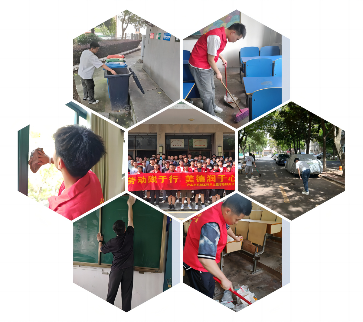 5月11日,我系團(tuán)總支組織同學(xué)們展開(kāi)教室衛(wèi)生大清掃“勞動(dòng)最光榮”校園志愿服務(wù),同學(xué)們參與性極高,面對(duì)打掃后窗明幾凈的教室,同學(xué)們也收獲了成長(zhǎng)和快樂(lè)。在引導(dǎo)同學(xué)們積極參與校園環(huán)境美化,使學(xué)生在為學(xué)院建設(shè)做貢獻(xiàn)的過(guò)程中,樹(shù)立“以辛勤勞動(dòng)為榮,以好逸惡勞為恥”的價(jià)值追求。(汽機(jī)系 羅瑋瑋)
