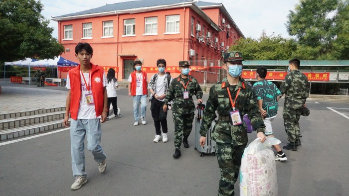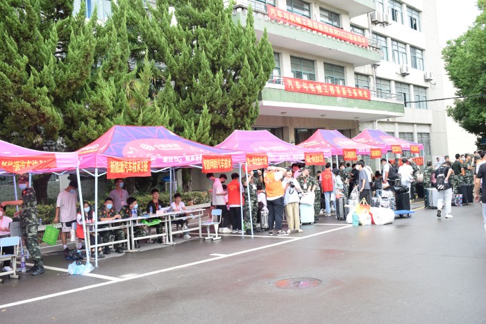 身穿紅色馬甲的志愿者早早集結,為陸續到來的新生有序提供接待引導、行李搬運、介紹咨詢等服務,師生志愿者個個熱情高漲,迎新工作井然有序。