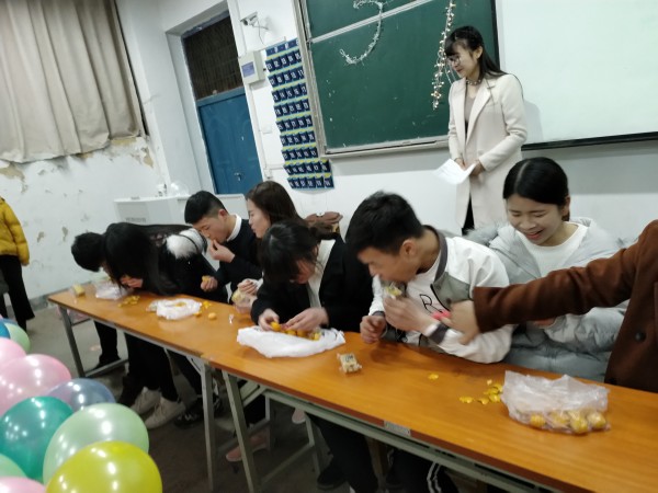 3月7日晚在南教西街101教室開展了趣味游戲活動(dòng)。活動(dòng)包括心有靈犀,吃貨大作戰(zhàn)和齊心協(xié)力碰撞氣球三個(gè)小游戲,由男女生共同合作完成。其中觀眾呼聲最高的吃貨大作戰(zhàn),隨著主持人說比賽開始,四組選手展開激烈的角逐,只為在最短時(shí)間內(nèi)將面前的食物消滅,隨著時(shí)間一點(diǎn)一滴的消逝,選手面前的食物也在逐漸減少,現(xiàn)場(chǎng)氣氛熱鬧非凡。男生表示:在女生節(jié)這一天帶給她們歡樂,我們也感覺很幸福。”