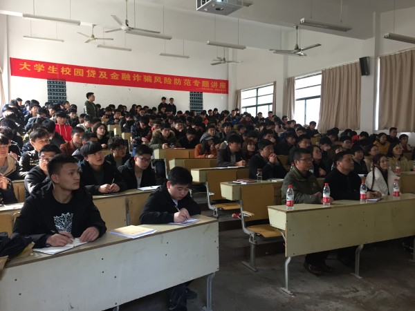 為引導青年學生正確識別與對待“校園貸”,增強風險防范意識,提升金融知識水平。3月21日下午,學院機關黨總支財務處黨支部本著關心學生、愛護學生、服務學生的思想,結合3月份黨員活動日與汽機系黨總支聯合開展送金融知識進校園專題宣講活動。專門邀請了交通銀行安徽省分行專業人士在我院南區教學樓西階101教室開展大學生校園貸及金融詐騙風險防范專題講座。