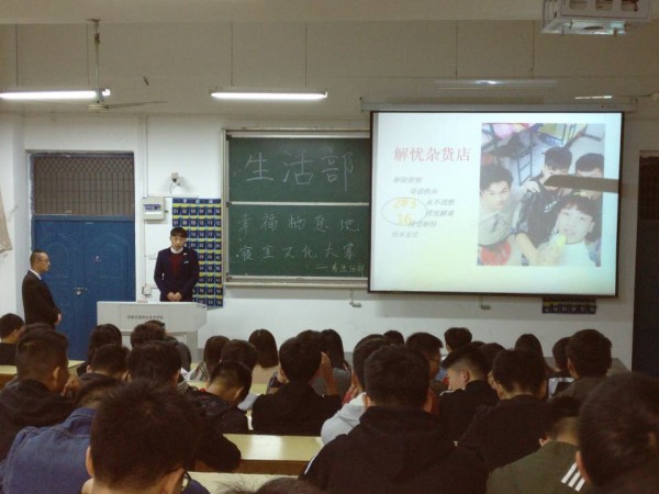 本次寢室文化設計大賽分為寢室裝飾和現場展示兩個環節。在前期的第一輪寢室裝飾環節中,生活部進寢室根據寢室衛生情況、寢室名稱、設計風格、創新意識等方面進行初步打分,有的寢室以書香為主題,寢室中處處可見書法作品;有的寢室以汽車為主題,走進寢室仿佛置身于車城,各個寢室設計充分展現了同學們的動手能力。