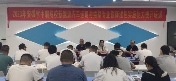 根據《安徽省教育廳關于做好2023年度中職教師素質提高計劃省級培訓工作的通知》文件精神,我院積極申報并承辦了新能源汽車運用與維修專業中職教師省培工作。本次培訓工作7月15日開始,7月24日結束,歷時10天,培訓內容涵蓋職業教育政策解讀,新能源汽車行業發展新技術、新趨勢,專業人才培養和專業建設,教學能力比賽作品分享,新型活頁式與工作手冊式教材建設,典型新能源汽車整車檢測及故障診斷教學組織示范,同時將安排學員前往國軒高科等新能源汽車整車及零部件企業參觀學習。