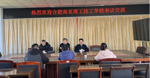 12月5日,我院與合肥南亞理工技工學校開展合作交流。汽機系副主任張峰、院招生辦主任周偉、智能裝備教研室主任吳明華、南亞理工總校長汪永國、督學甘光生、教務處主任吳長海參加會議。