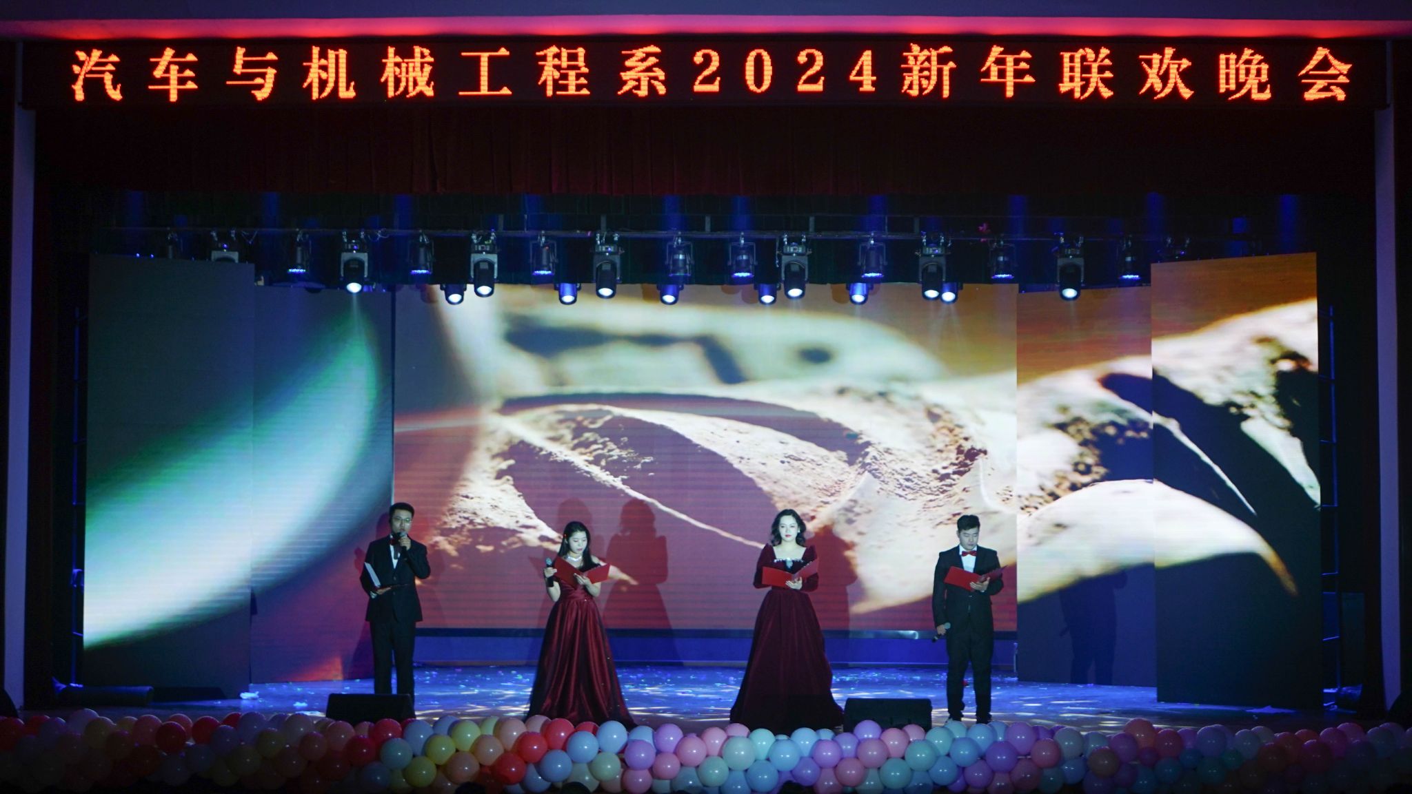 龍伴祥運隨歲至,燕偕福氣送春來。1月3日晚,汽車與機械工程系“匯夢汽機 欣欣向龍”2024新年聯歡晚會在南區大禮堂隆重舉辦。院黨委委員、副院長韋兵,院黨委委員、紀委書記季傳友,院黨委委員、汽車與機械工程系主任梁洪波,汽車與機械工程系黨總支書記沈勁松,學生處副處長、院團委書記劉元元,系其他領導班子成員以及廣大師生齊聚一堂,共同歡度新年。
