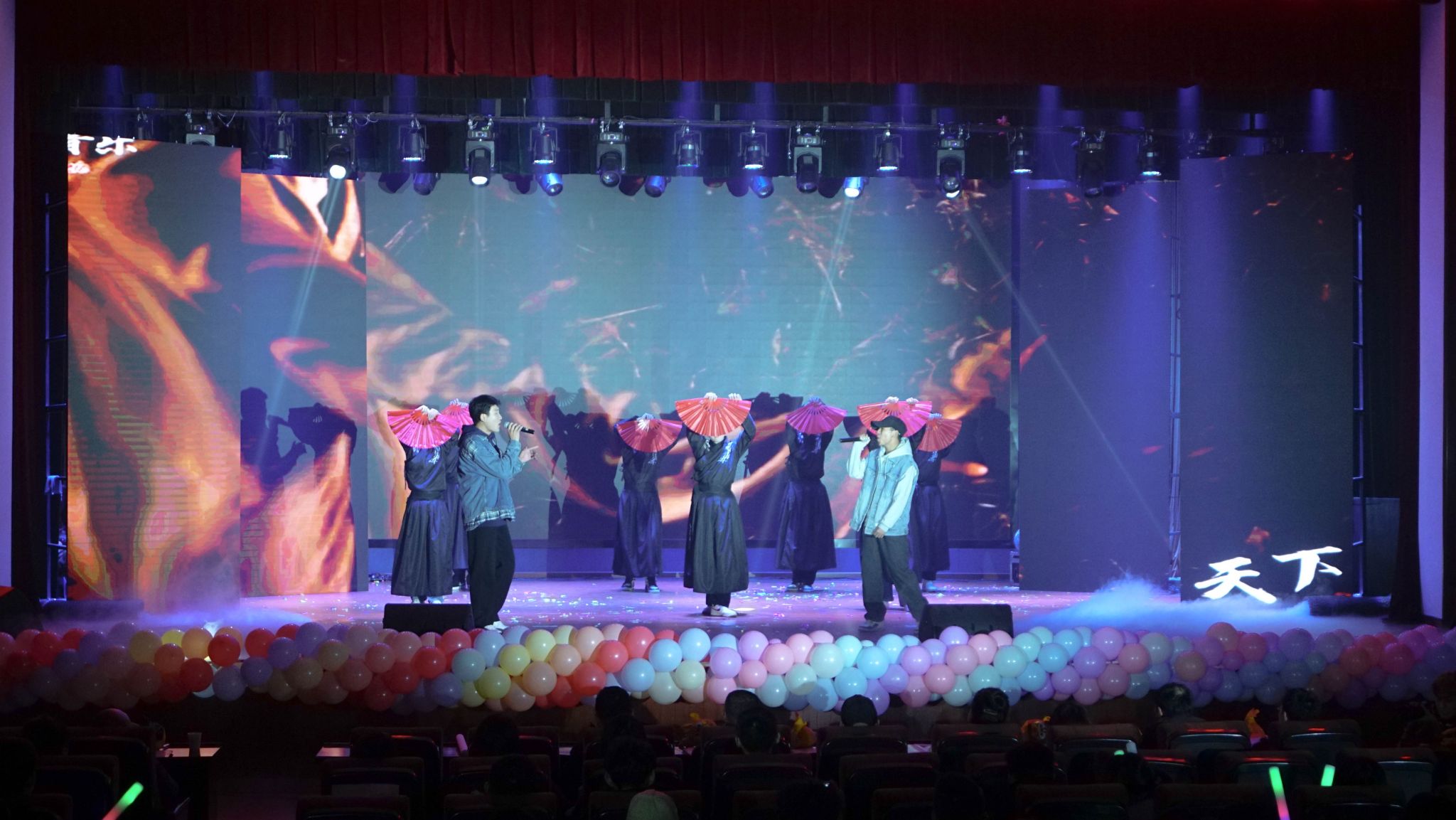 歌伴舞《天下》燃情演繹,激昂的旋律、深情的歌詞、灑脫的古風扇舞,承載了汽機男兒心中的武俠情結。根據校園生活改編的小品《寢室那些事兒》,以夸張的表演、幽默的臺詞展現了男生寢室關于生活、戀愛、就業等趣事,在歡聲笑語的同時更是傳遞了深深的同窗之情。說唱串燒《戀愛圓舞曲》,抒唱了青春時期的情感困惑,傳遞了不卑微、不嫉妒、不強求的戀愛理念。情景劇《青年何為 何為青年》,通過深情的情景朗誦,回顧百年青年奮斗史,展示新時代青年人生追求,向祖國和人民鄭重宣誓,新時代的青年將牢記黨對青年的殷切期望,以奮斗之姿展青春擔當。