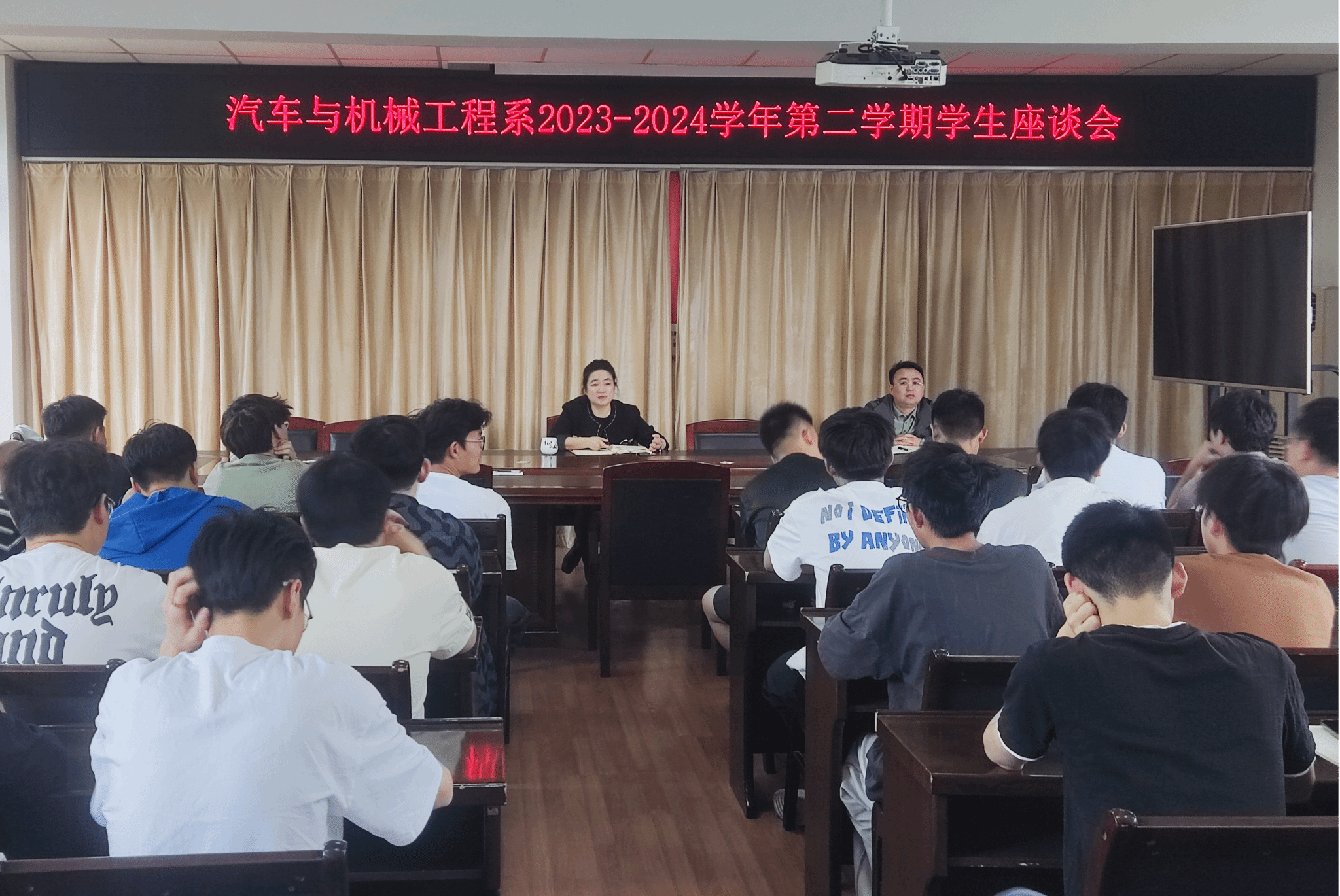 為進一步加強院系領導深入一線聯系學生工作,關心了解學生思想動態和學習生活狀況,收集學生對學校教育、管理、服務等方面的意見和建議,扎實推進學生思想政治教育工作實效,構建和諧校園。5月9日,汽車與機械工程系召開2023-2024學年第二學期學生座談會,院黨委委員、汽機系主任梁洪波,副主任張峰參加座談會,22級和23級班級學生代表參會發言。