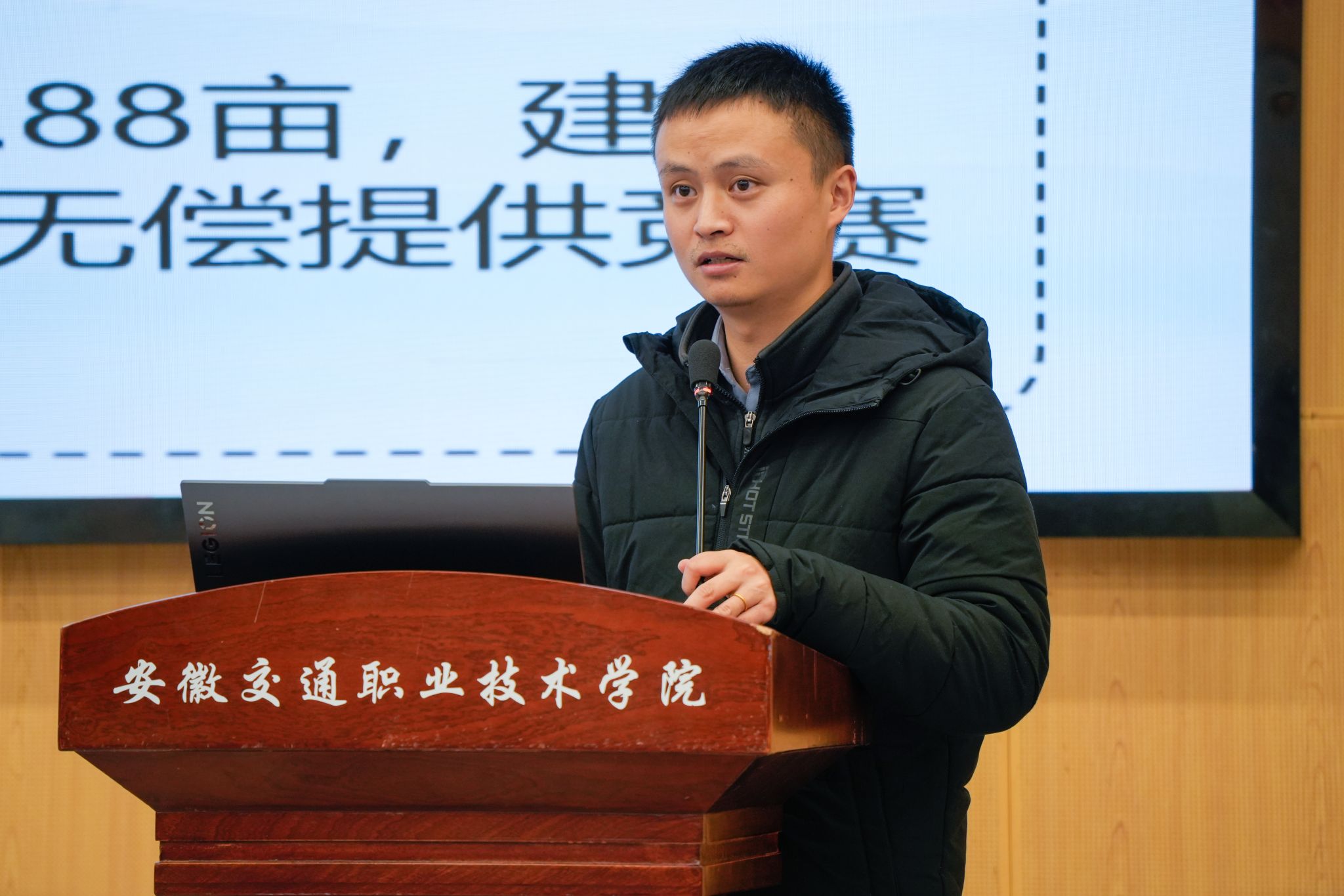 之后,梁月放向與會領導及師生匯報了安徽交通職業技術學院籌備工作的情況。涵蓋了多個重要方面,包括體育館的場地面積、活動中心禮堂的設施完善、比賽期間的住宿安排以及參賽人員的餐飲服務等。梁老師表示,所有籌備工作正按計劃順利推進,確保為即將到來的比賽提供一個高標準、高質量的環境,力求給所有參賽者留下深刻印象。