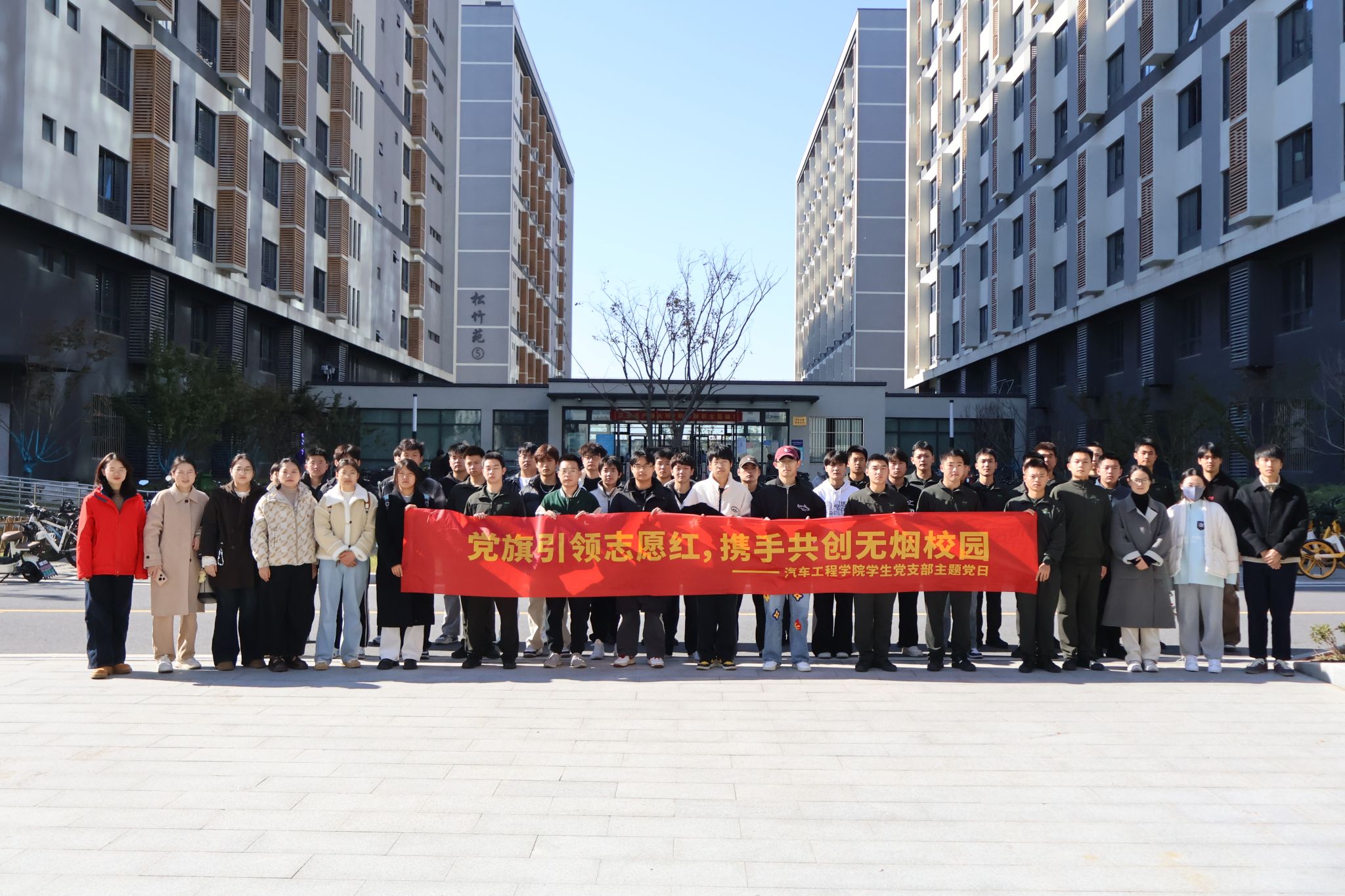 11月20日,汽車工程學院學生黨支部組織開展“黨旗引領志愿紅,攜手共創無煙校園”主題校園禁煙宣傳活動。支部黨員師生及第58期入黨積極分子主動投身志愿服務,深入學生宿舍開展校園禁煙宣傳工作,以實際行動踐行黨員使命擔當,為營造清新校園環境注入紅色動力。