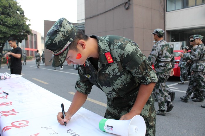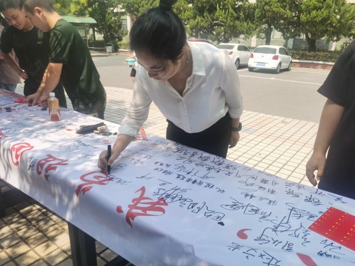 活動現場,老師和同學們紛紛在簽名海報上寫下對祖國母親的美好祝愿,并鄭重簽下自己的名字。“祖國母親,生日快樂”、“祝福祖國繁榮昌盛”、“愿祖國國泰民安”、“祖國我愛您”等一句句簡單而樸實的話語,承載了大家對祖國的美好祝福和濃濃的愛國之情。21汽修3班章安說:“生在紅旗下,長在春風里,作為一名青年學生,生逢盛世,我感到無比自豪,同時也倍感責任重大,我們必須努力拼搏,在青春的賽道上奮力奔跑,不負韶華,不負時代,不負人民!