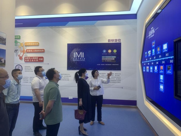 首先,梁洪波一行在甄圣超博士及張釗總經理等人的帶領下參觀了合工大智能院展廳及機器人/智能制造公共創新服務平臺。