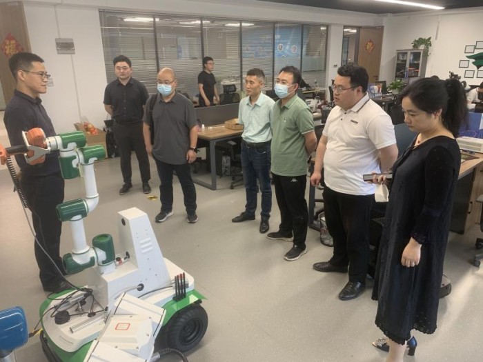 5月25日下午,汽車與機械工程系主任梁洪波、副主任張峰、汽車維修教研室主任王雷、新能源技術教研室主任程章和無人機專業帶頭人張翼一行5人赴合肥工業大學智能制造技術研究院參觀交流。合工大智能院創新創業平臺負責人甄圣超、合肥粵嵌科技有限公司總經理張釗、市場副總王若浩和市場主管李乃菊等熱情接待。