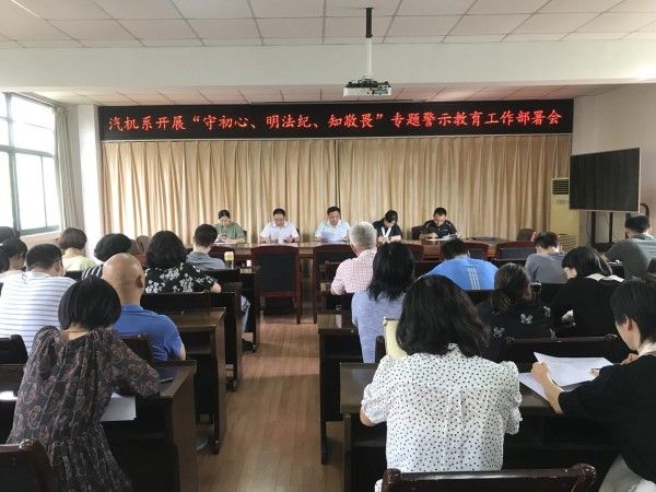 為進一步推進全面從嚴治黨,落實中央八項規定精神,馳而不息糾治“四風”,引導黨員干部始終牢記黨紀國法,切實把紀律規矩挺在前,不踩紅線,不破底線,維護風清氣正的政治生態。按照學院黨委和紀委要求,9月15日,汽機系在南教三樓會議室召開“守初心、明法紀、知敬畏”專題警示教育工作部署會,會議由系黨總支書記李家林主持,汽機系全體教職員工參加了會議。