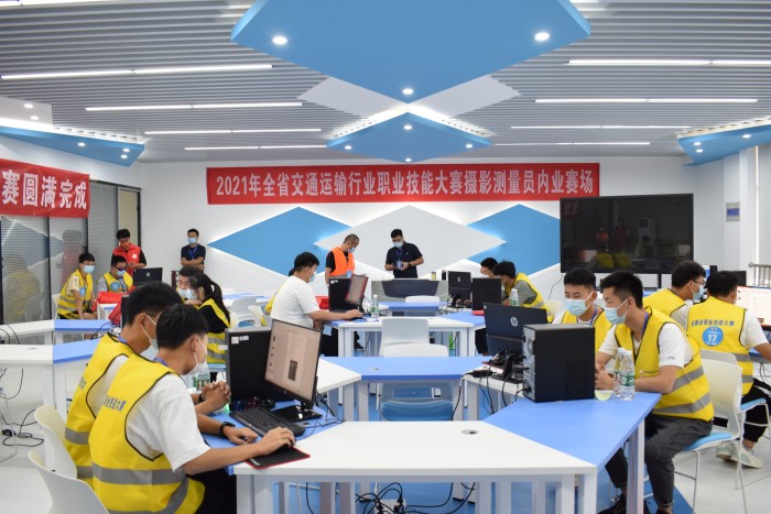 本次競(jìng)賽是為貫徹落實(shí)《國(guó)務(wù)院辦公廳關(guān)于印發(fā)< 職業(yè)技能提升行動(dòng)方案(2019-2021)>的通知》(國(guó)辦發(fā)[2019]24號(hào))精神和《關(guān)于組織開展安徽省職業(yè)技能大賽——2021年省級(jí)行業(yè)職業(yè)技能競(jìng)賽的通知》(皖人社秘[2021]149號(hào))文件精神,由安徽省交通運(yùn)輸廳、安徽省人力資源和社會(huì)保障廳聯(lián)合主辦,安徽交通職業(yè)技術(shù)學(xué)院承辦,安徽省測(cè)繪地理信息學(xué)會(huì)、北京達(dá)北時(shí)代科技有限公司、安徽博冠電子科技有限公司和北京中科浩電科技有限公司協(xié)辦。攝影測(cè)量員賽項(xiàng)分為無人機(jī)低空影像數(shù)據(jù)采集(外業(yè))和低空攝影測(cè)量影像處理(內(nèi)業(yè))兩個(gè)模塊。無人機(jī)駕駛員賽項(xiàng)分為理論考核、無人機(jī)裝調(diào)飛、室內(nèi)編隊(duì)飛行三個(gè)模塊。