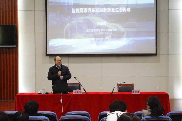 特邀正高級工程師,高級經(jīng)濟師,國務院特殊津貼專家,現(xiàn)任浙江省智能網(wǎng)聯(lián)汽車創(chuàng)新中心總經(jīng)理,浙江大學工程師學院兼任研究員,浙江省發(fā)改委和經(jīng)信廳專家?guī)鞂<遥憬⌒履茉雌嚇藴驶夹g委員會副主任委員,浙江省新能源汽車產(chǎn)業(yè)聯(lián)盟專家委副主任委員楊愛喜大師為我系和文理科學系部分師生做了題為《智能網(wǎng)聯(lián)汽車發(fā)展趨勢及生態(tài)構建》的專題報告。汽車與機械工程系黨總支書記李家林、黨總支副書記、主任梁洪波、文理科學系黨總支副書記、副主任王玨出席了報告會,兩個系近200多名師生聆聽了報告,報告會由梁洪波主持。