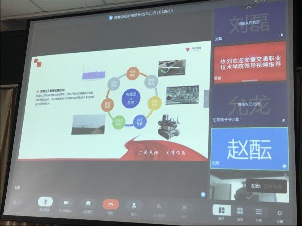 3月13日上午,在合肥匯聯電子有限公司的誠摯邀請下,我院汽機系無人機專業教師通過視頻會議形式對北京韋加智能科技股份有限公司進行了線上拜訪考察。會議由合肥匯聯電子有限公司營銷副總張允龍主持,北京韋加智能科技股份有限公司總經理趙醞、市場經理李雪婷、教學總監宋建堂、項目總監鄺燁、綜合總監雷鑫列席會議,我院汽機系系主任梁洪波、無人機專業帶頭人張翼、骨干教師解鵬參與會議。