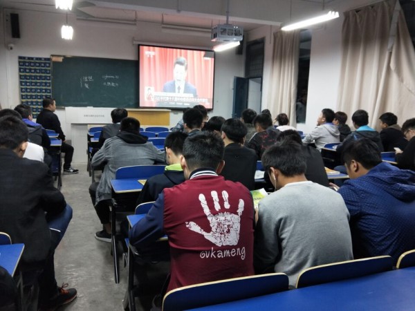 10月22日晚,汽車與機械工程系團總支組織大一大二全體同學利用晚自習時間在各班教室觀看黨的十九大開幕盛況,聆聽了習近平總書記代表第十八屆中央委員會所作的報告。
