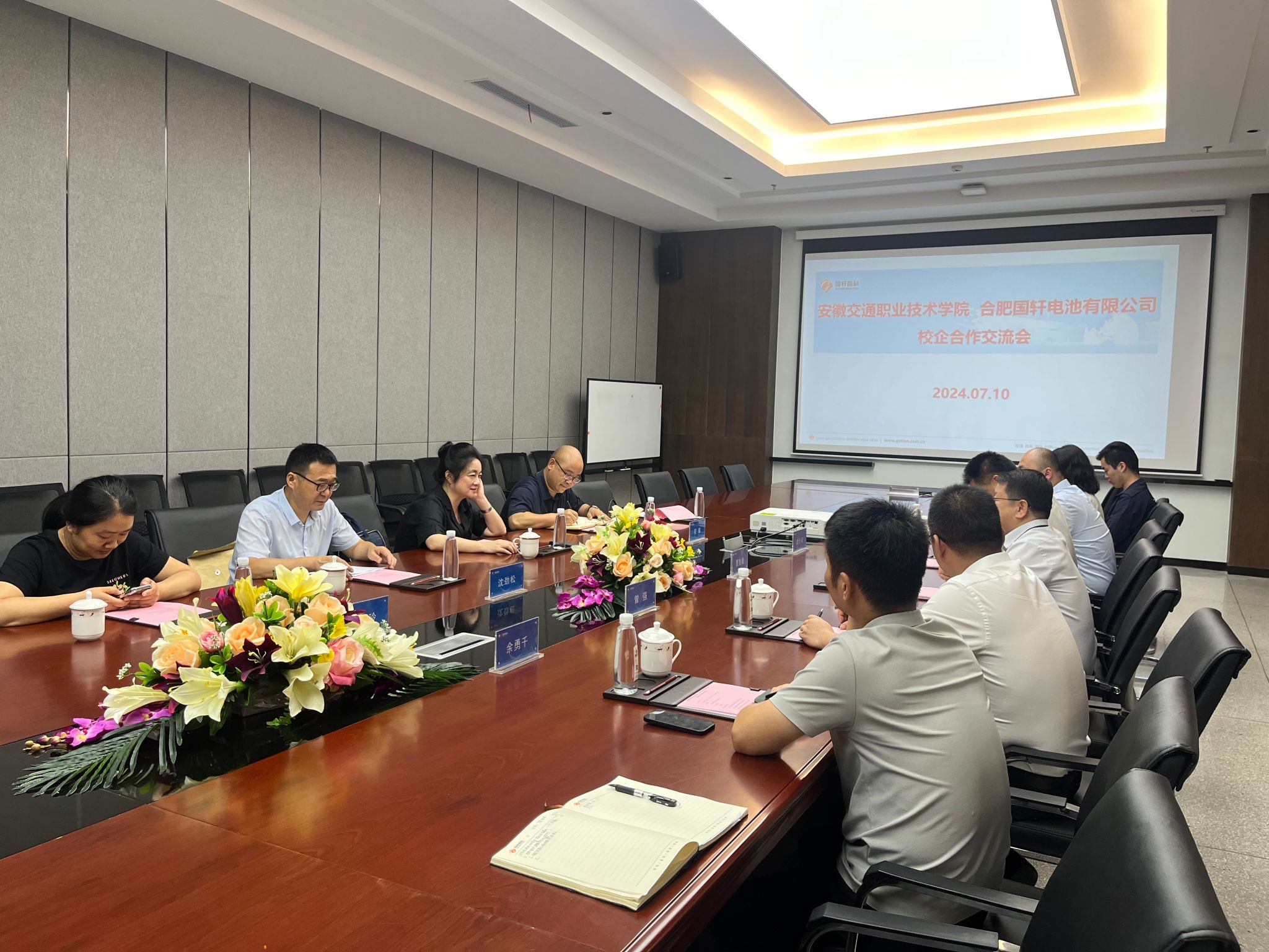 7月10日下午,學院黨委委員、副院長梁洪波,汽機系黨總支書記沈勁松、副主任程章及合肥國軒高科校企合作項目負責人周巧玲來到合肥國軒高科經開區工廠,與國軒高科股份有限公司工程技術平臺高級總監武行兵、合肥國軒電池有限公司總經理賈獨俊、副總經理曾強等人開展交流座談。