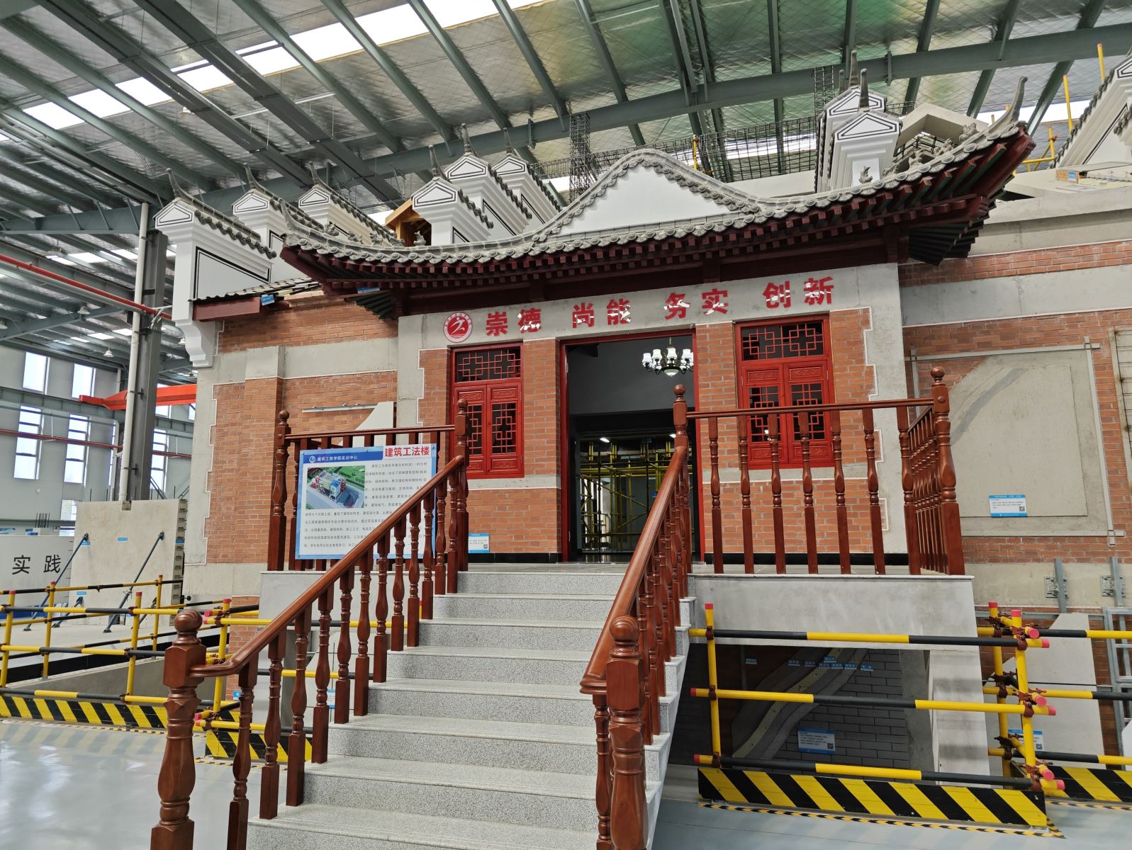 在建筑工程學(xué)院工程實訓(xùn)館及教學(xué)樓,負(fù)責(zé)人詳細(xì)介紹了建筑工法樓、裝配式建筑實訓(xùn)基地、結(jié)構(gòu)實驗基地、世界技術(shù)大賽混凝土建筑、砌筑集訓(xùn)基地建設(shè)情況。