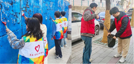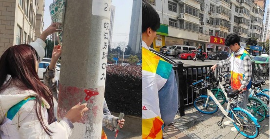 隨后,愛心志愿者分組用小刮鏟清理了社區墻壁上的小廣告,撿拾垃圾,幫助共享單車歸位,種植樹木等等,用實際行動踐行雷鋒精神。