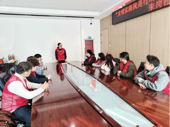 愛心志愿者來到朱崗社區,與社區工作人員一同學習雷鋒的事跡,分享自己身邊的雷鋒故事,并對今天的活動進行了任務分工。
