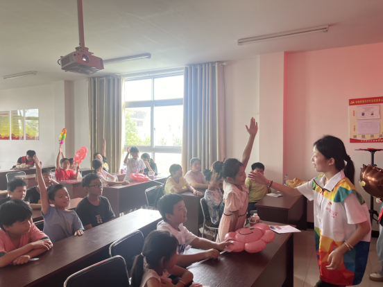 第二天,志愿者團(tuán)隊來到湯圩村青耕學(xué)堂,根據(jù)參學(xué)兒童低齡化的特點,組成“森林小隊”,化身兔子姐姐、獅子哥哥等等有趣的卡通形象,迅速拉近了和孩子們的距離。