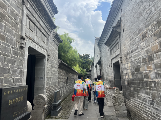 在參觀過程中,志愿者團(tuán)隊被這座始建于清光緒年的宅院深深吸引,整座建筑群為磚木結(jié)構(gòu)的三進(jìn)院落,磚雕、木雕、石雕點綴得體,錯落有致,技法精湛。每一處細(xì)節(jié)都透露出歷史的厚重與文化的積淀,讓人仿佛穿越時空看到這位清末大吏的家庭生活場景。在駐村工作隊副隊長李偉的介紹下,團(tuán)隊了解到,程文炳故居不僅承載著豐富的歷史文化底蘊(yùn),更是阜陽市重要的愛國主義教育基地,德育實踐的重要基地。
