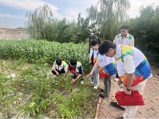 在湯圩村駐村工作隊的帶領(lǐng)下,志愿者團(tuán)隊實地探訪了位于張崗小學(xué)的勞動教育基地,同時也是該鎮(zhèn)黨員勞動教育基地。志愿者團(tuán)隊們在陳老師的帶領(lǐng)下,首先來到了農(nóng)耕園,這里的芝麻、西紅柿、辣椒、豆角、土豆、玉米等多種農(nóng)作物均是張崗小學(xué)的孩子們在老師的指導(dǎo)下種植,參與了播種到收獲的全過程,體驗了勞動的艱辛和收獲的快樂。農(nóng)耕園中水塘不僅僅用于養(yǎng)殖魚類,也是防溺水安全教育的實地場景。