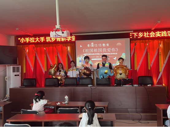 在這堂課的最后,志愿者團(tuán)隊們以安徽交院土木工程系優(yōu)秀團(tuán)員代表的身份,向孩子們展示了團(tuán)旗,愛與希望在此刻薪火相傳,愛國主義教育深入孩子們的記憶。