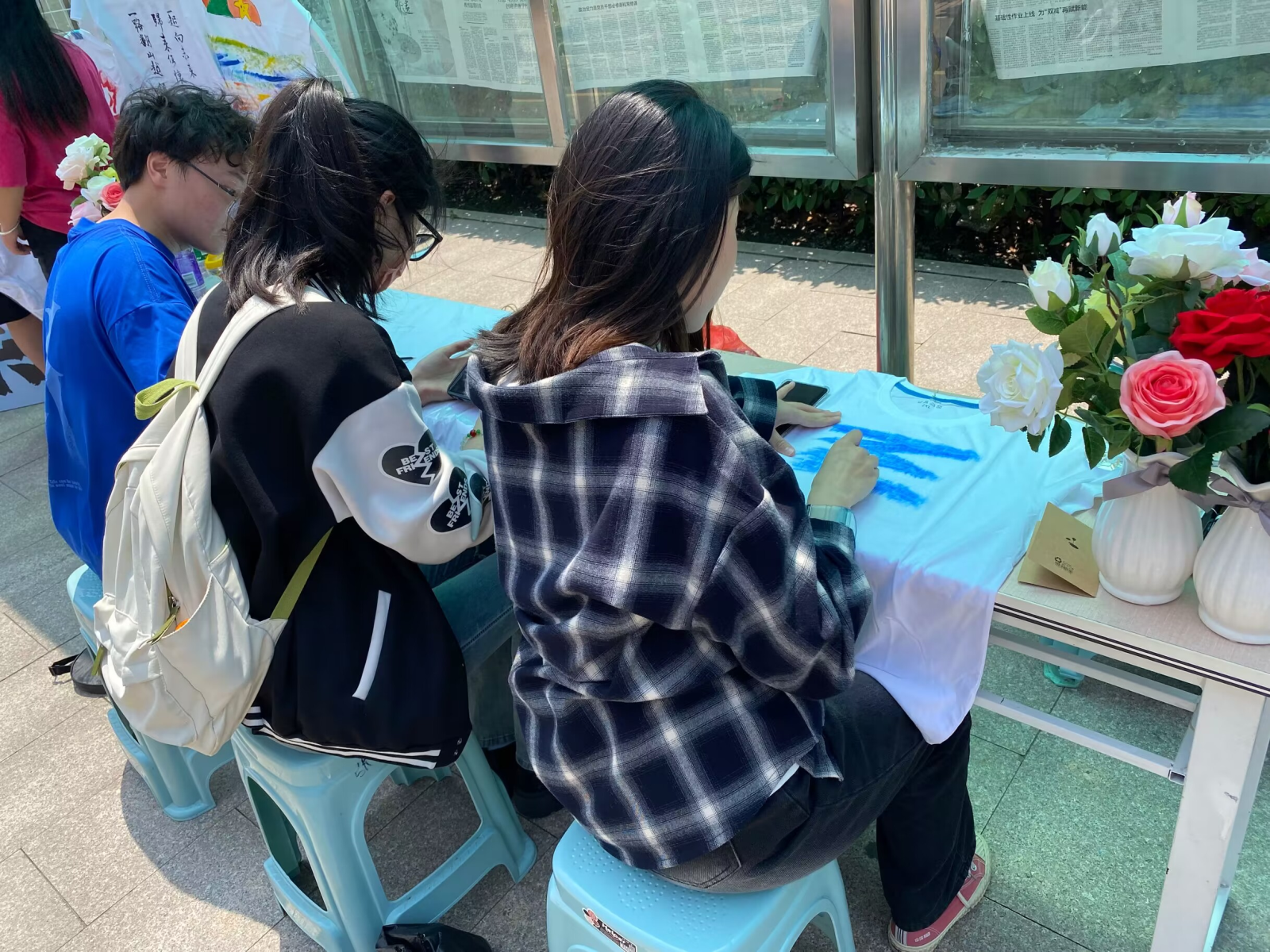 活動一開始便吸引了很多老師同學的關注,大家熱情高漲,將自己對青春的理解、對祖國的熱愛、對未來的展望凝聚筆尖,在文化衫上繪制出一幅幅色彩明艷輕快的圖案,展現了眼中有光、心中有夢的交院青年那份活力與浪漫。