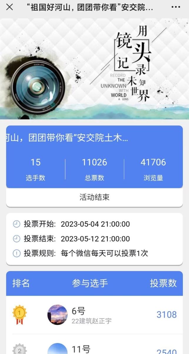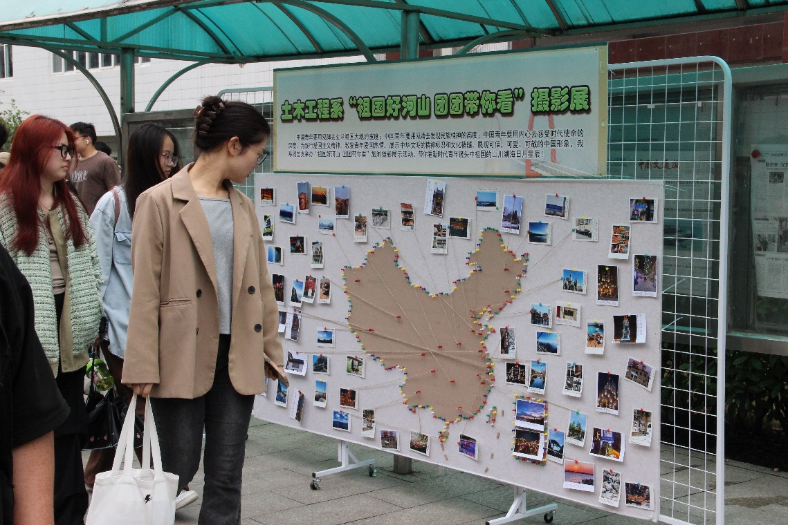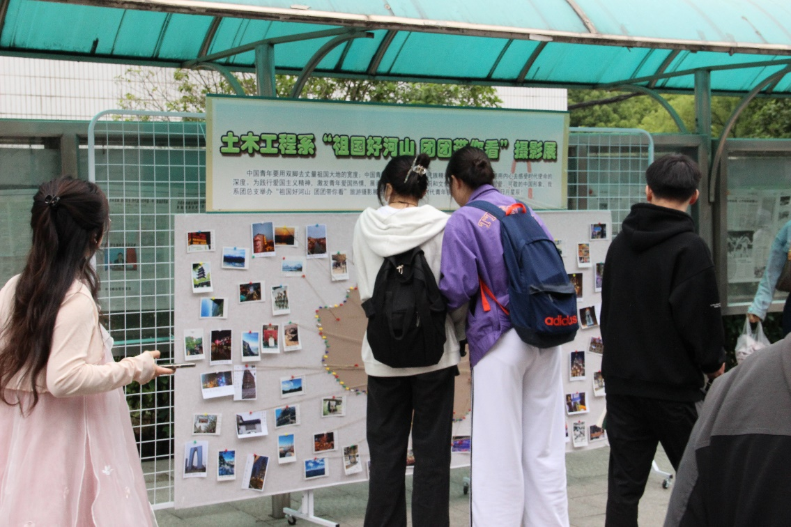 本次活動準備充分,同學們熱情高漲。于5月初開始將各位同學們游覽祖國各地拍下的照片上傳到自編小程序中進行全院投票,經過半個月的激烈投票,選出最能體現美好風景與風土人情的攝影作品,于5月24日在北區教學樓樓下以“祖國好河山,團團帶你看”為主題舉辦了攝影展活動。