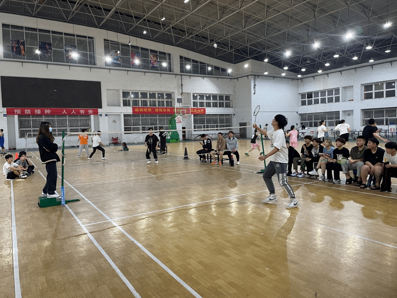 在體育部的積極宣傳下大家踴躍報名參與,本著“友誼第一,比賽第二”的原則展開了此次活動。第一場比賽是男子單打,大家輪流抽簽兩兩對決,緊張而又刺激的比賽給觀眾帶來了一場視覺盛宴。高遠球,扣殺,劈殺,吊球等各路球技被他們演繹的淋漓精致,比分不斷被改寫。觀眾的呼聲此起彼伏,整場的氣氛被推向高潮。