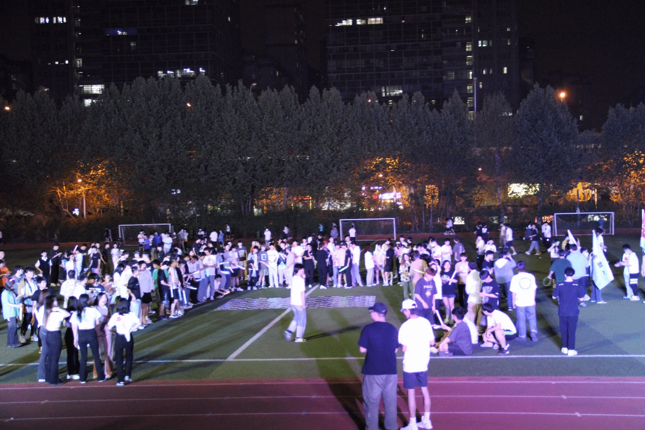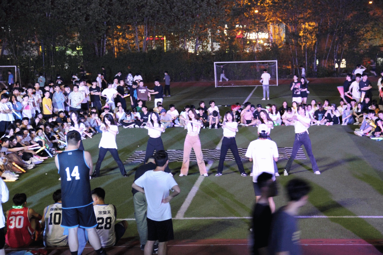 晚上8:00,隨著音樂聲在學校操場響起,一群充滿青春氣息的大學生們跟隨著音樂的節(jié)奏翩翩起舞,氛圍燈,閃光設備,音響效果,帶動了現(xiàn)場圍觀同學的情緒。展示了疫情下的在校大學生不甘寂寞青春無限的活力。