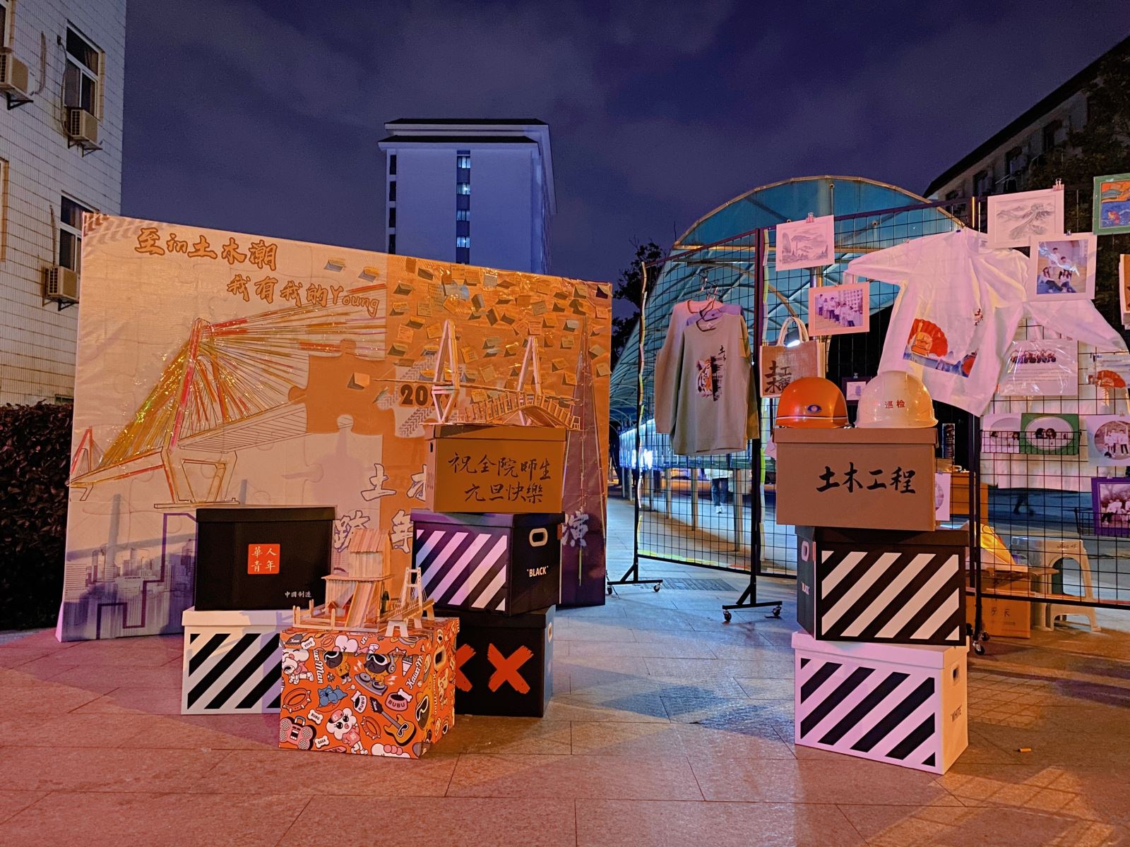 2021年12月31日,土木工程系在團總支學生會的策劃下,在教學樓下開展了“至in土木潮 我有我的Young”跨年文創展演活動。土木工程系學生黨支部也參加了此次活動,系部老師和學生一起動手,共同完成了此次展演的布置。
