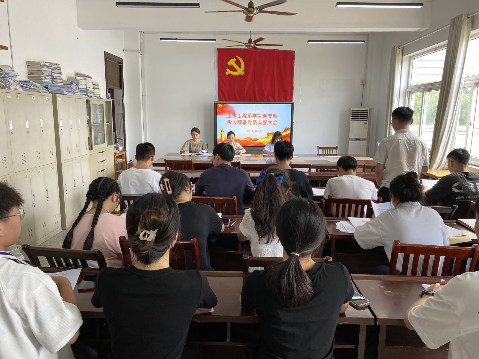 6月21日上午,土木工程系學生黨支部召開吸收預備黨員支部大會。26名學生黨支部教師和學生黨員,11名新黨員參會,會議由學生黨支部書記張靜主持。