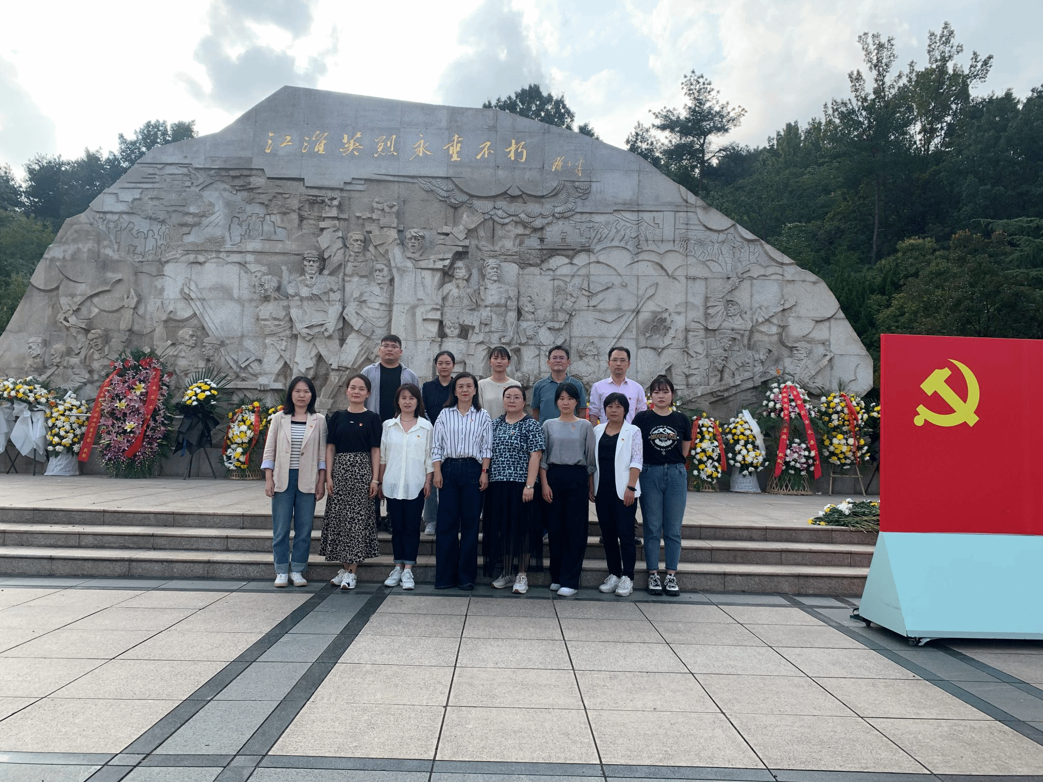 合肥西郊的蜀山烈士陵園,氣氛莊嚴肅穆。在悼念廣場和烈士紀念碑前,黨員同志們瞻仰先烈,鞠躬獻花,在黨旗和烈士紀念碑前,由黨支部書記帶頭,重溫了入黨誓詞,集體激昂宣誓。
