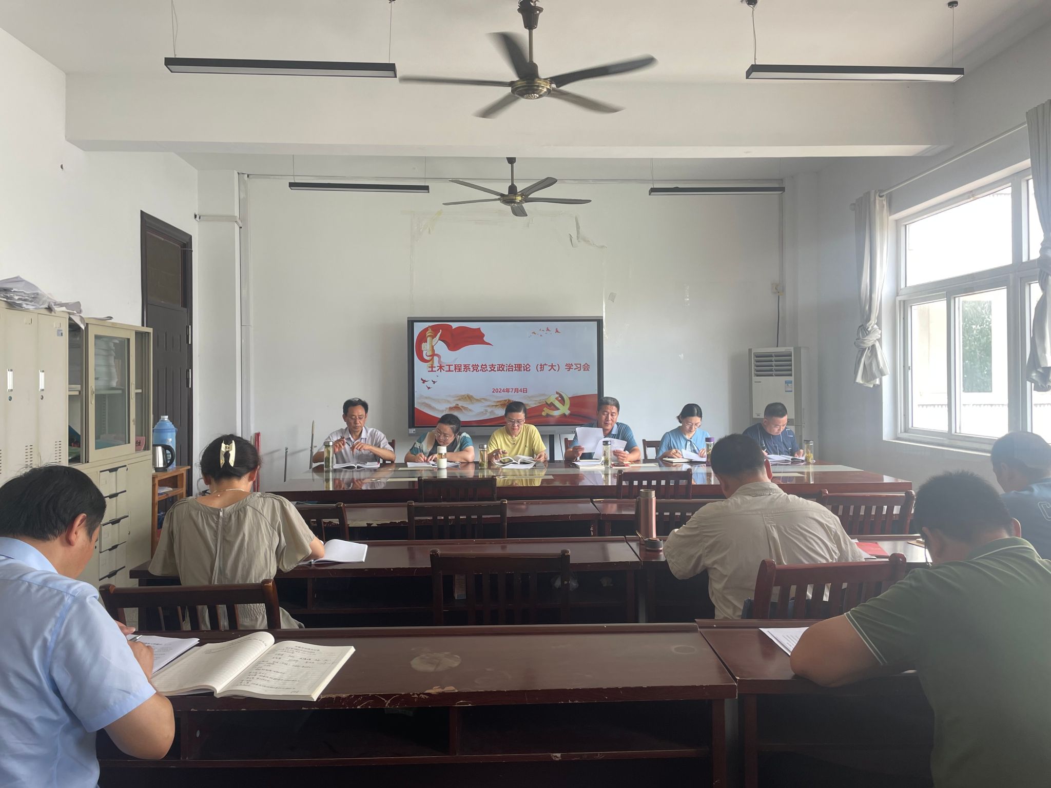 7月4日下午,土木工程系黨總支召開政治理論(擴大)學習會,系領導班子、副科級以上干部、支部書記參加學習。系黨總支副書記、主任王東主持會議。