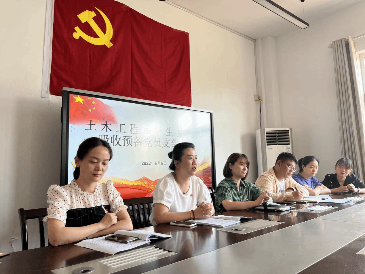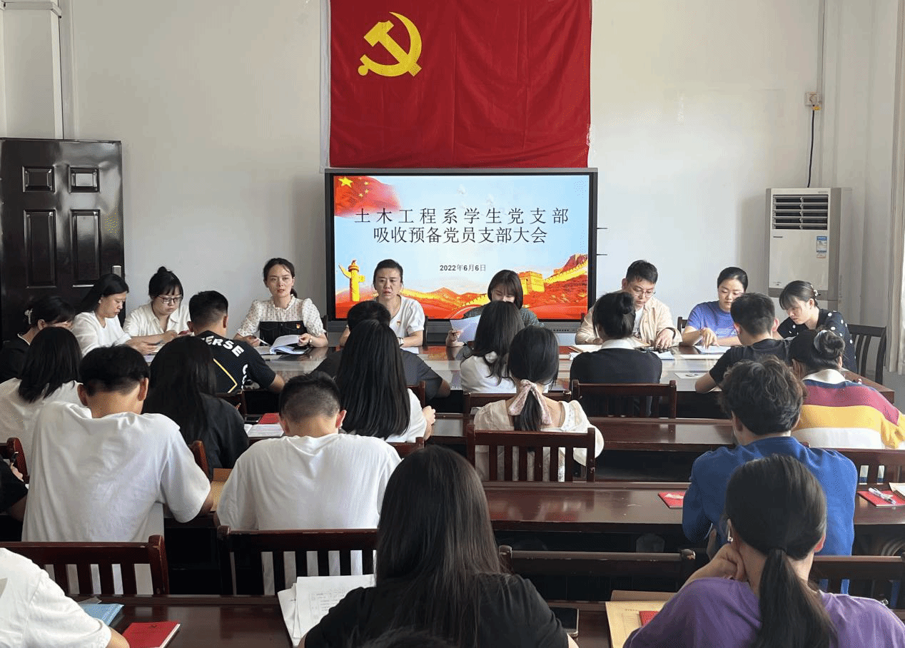6月6日下午2點(diǎn)30分,土木工程系學(xué)生黨支部召開吸收預(yù)備黨員支部大會。18名學(xué)生黨支部教師和學(xué)生黨員代表,18名新黨員參會,土木工程系黨總支副書記朱蓉出席,會議由學(xué)生黨支部書記張靜主持。