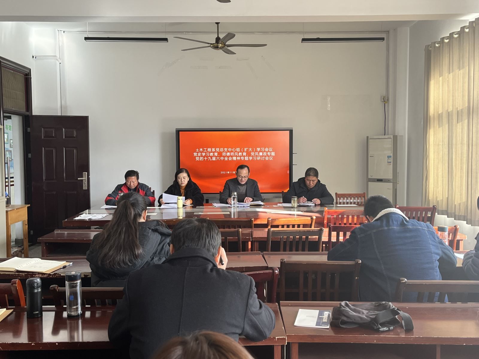 11月22日下午,土木工程系黨總支召開中心組(擴大)學習會議,專題學習研討黨的十九屆六中全會精神,進一步深刻領會全會的核心要義和豐富內涵,把思想和行動統一到以習近平同志為核心的黨中央決策部署上來,切實用全會精神統一思想、統一意志、統一行動。系領導、副科級以上干部、各支部書記參加學習交流。