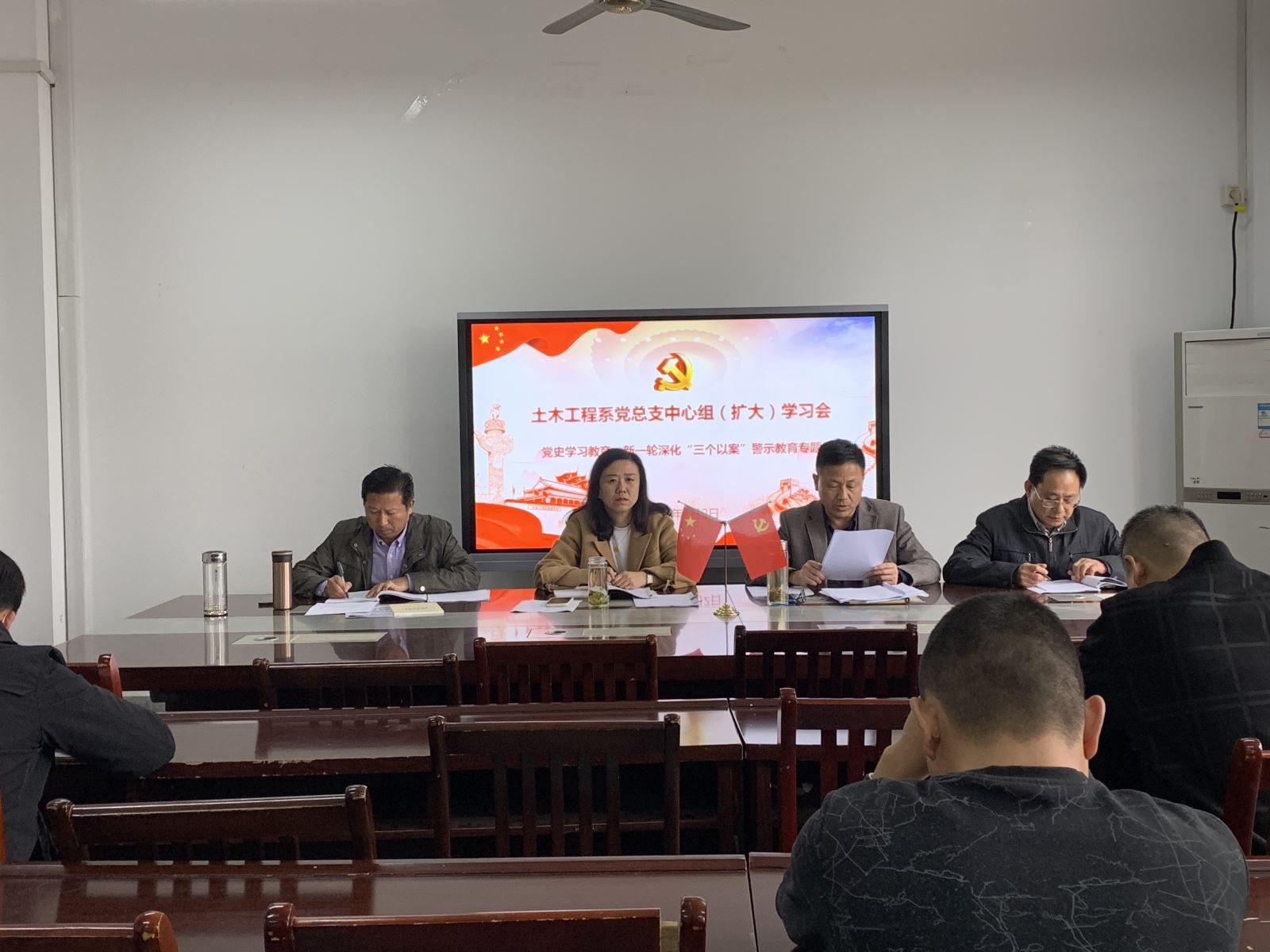 土木工程系中心組學習成員、副科級以上干部、各黨支部書記和教研室主任參會。