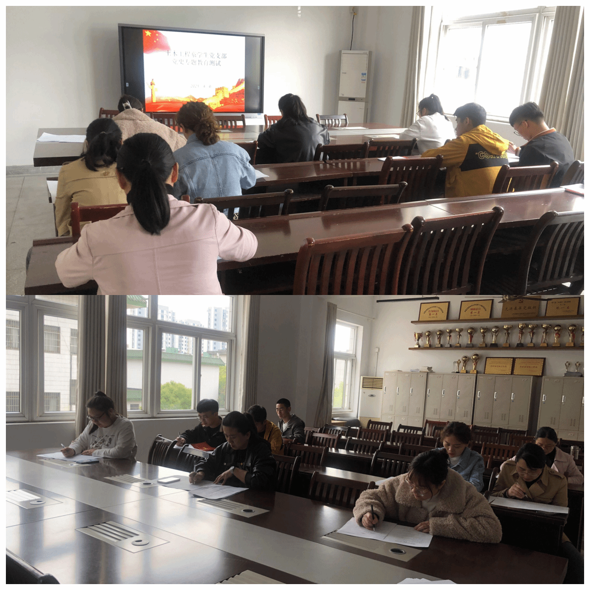 為倡導(dǎo)師生黨員知史愛黨、知史愛國,進一步檢驗黨史學(xué)習(xí)教育成效,4月6日下午,土木工程系學(xué)生黨支部在系會議室舉行了一次黨史和新中國史知識測試,黨支部全體黨員參加測試。