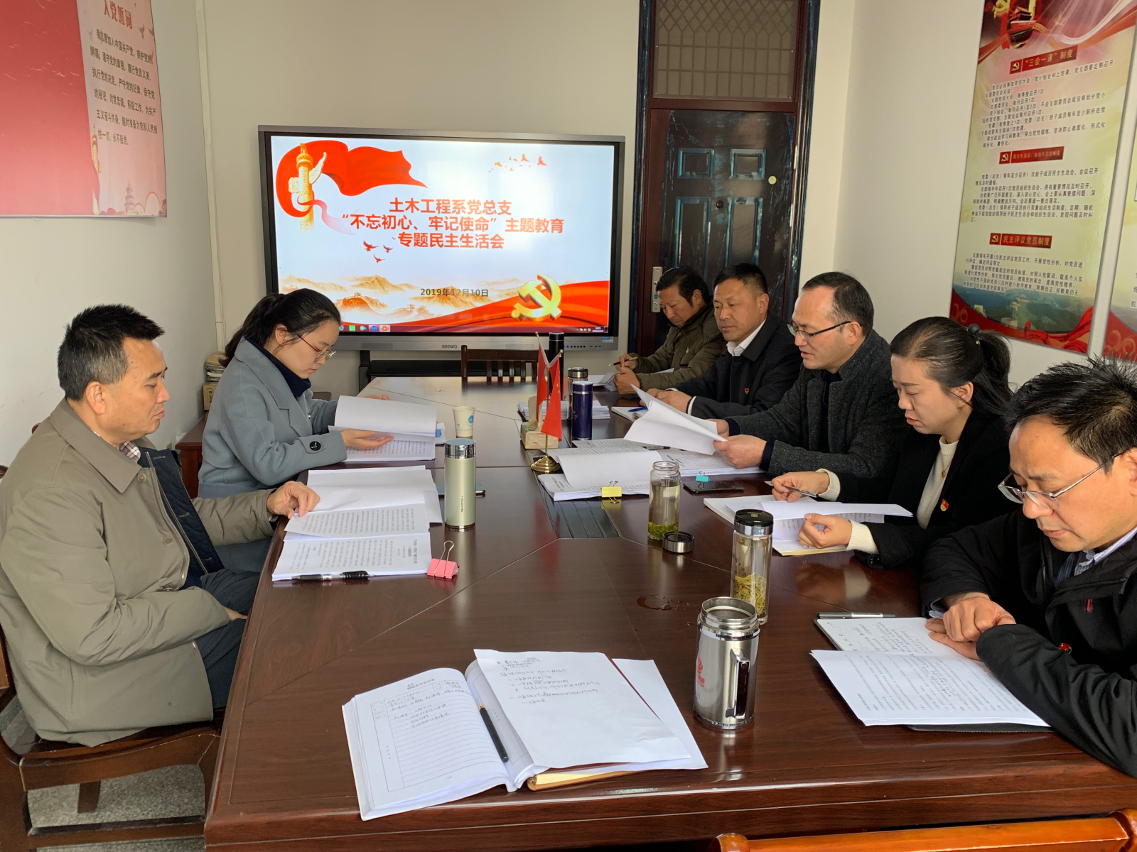 12月10日下午,土木工程系黨總支召開“不忘初心、牢記使命”專題民主生活會。院黨委書記孫順利蒞臨會議并進行了指導,系黨總支委員、院組織人事處方雅君出席會議。系黨總支書記鄒建華主持會議。