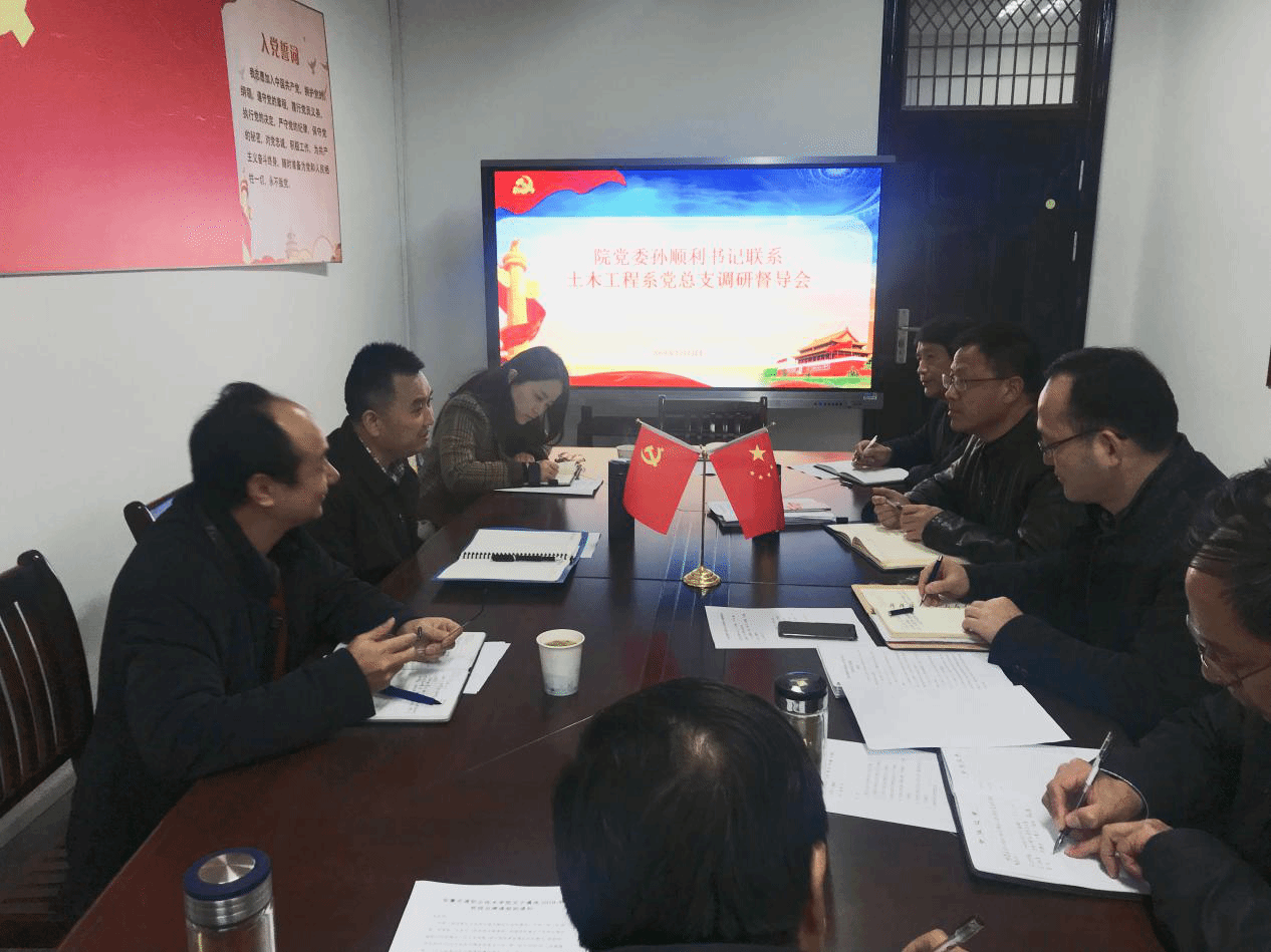 12月3日下午,院黨委孫順利書記在教務處處長吳玉的陪同下蒞臨土木工程系開展工作調研,并聽取工作匯報。調研督導會由系黨總支書記鄒建華主持,系領導班子全體成員參加了此次會議。