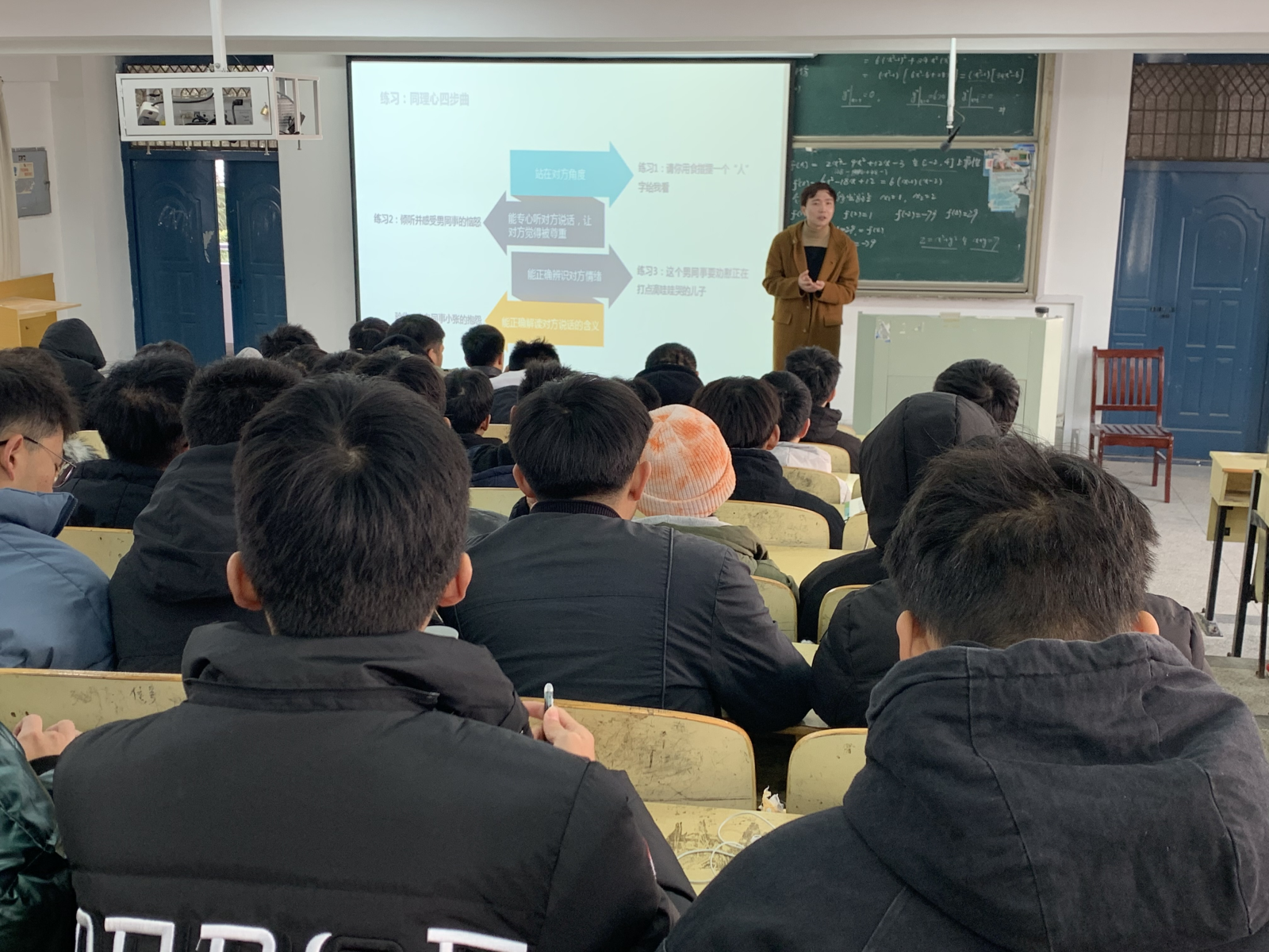 金老師首先介紹了溝通的心理學含義和重要性,接著他分別從同理心四部曲、傾聽與反饋三個角度分析了高效的溝通技術,他用四個案例練習教會大家同理心溝通四部曲,用日常生活常見的具體情景模擬幫助現(xiàn)場同學理解了傾聽的藝術,反饋的技巧,讓同學們對如何實現(xiàn)高效的溝通。最后,金老師為大家詳細講解了在求職過程中應注意的溝通技巧。金老師整場演講幽默風趣,慷慨激昂,而與現(xiàn)場同學的互動也精彩紛呈,讓同學們印象深刻。