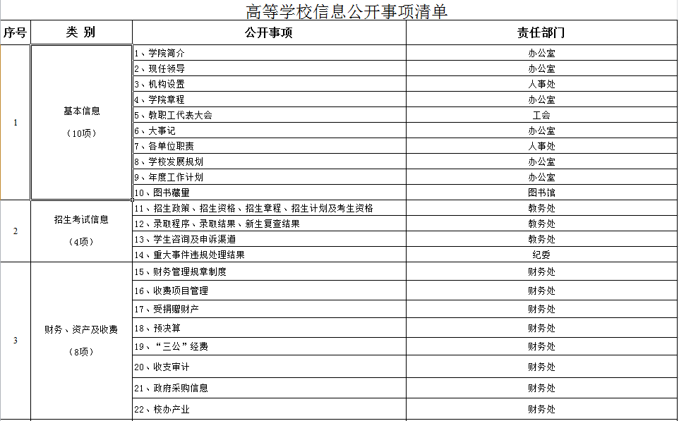 教育部關于公布《高等學校信息公開事項清單》的通知
