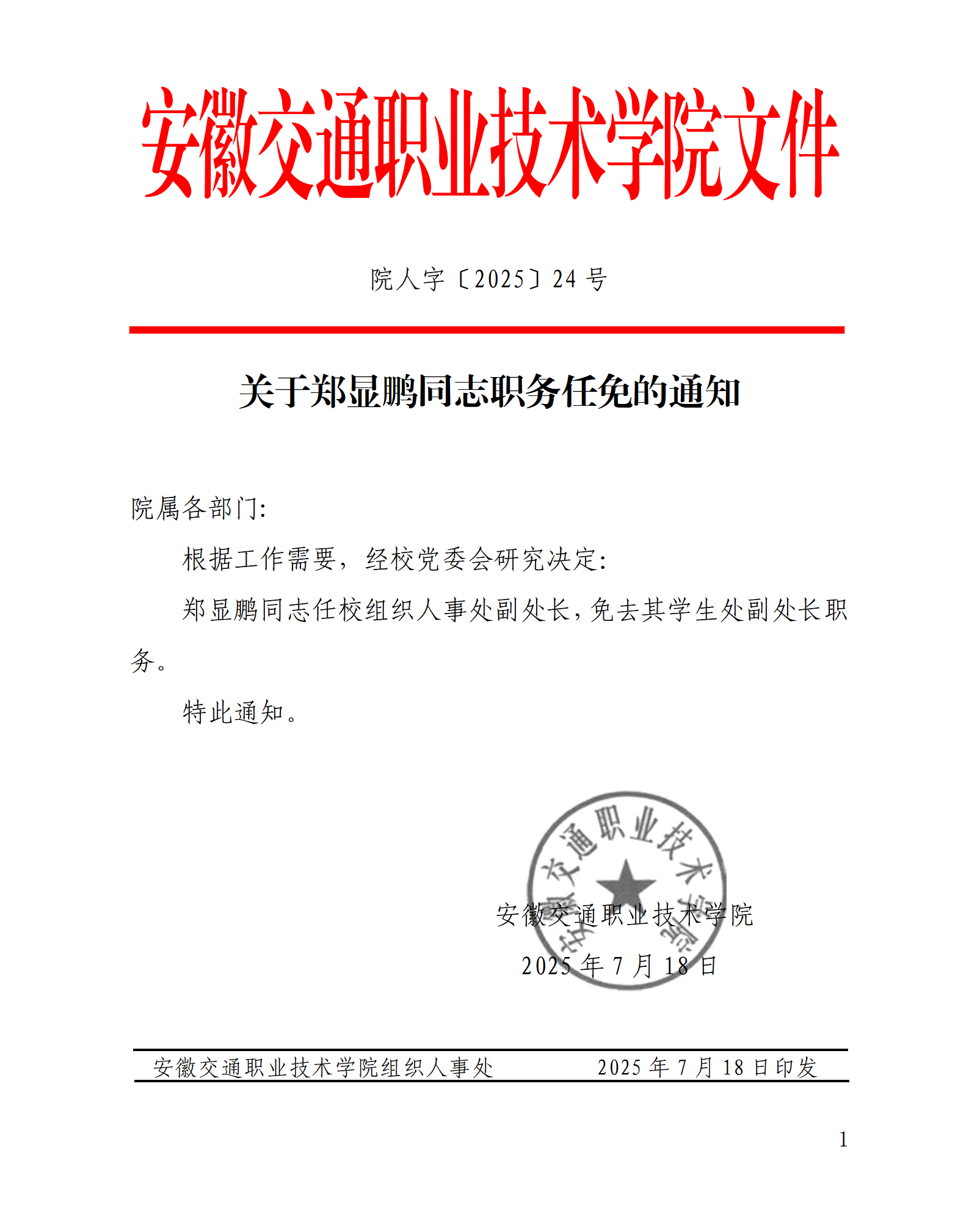 中共安徽交通職業技術學院委員會關于各二級學院主要負責人任職調整的請示